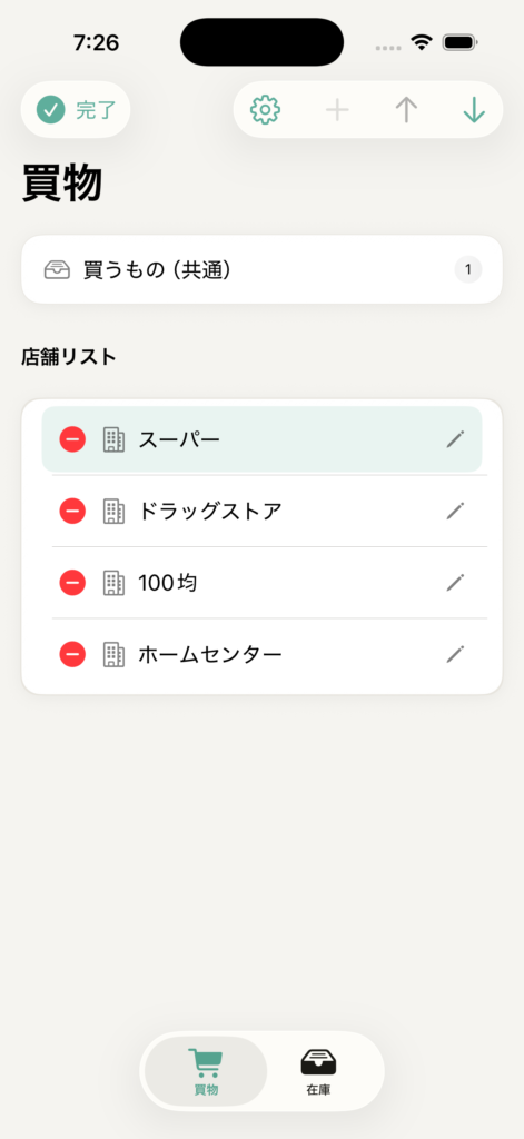 スーパー/ドラッグストアなど、店舗ごとにリストを分けられます。