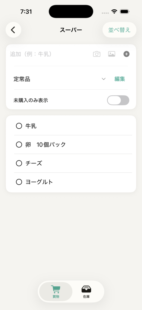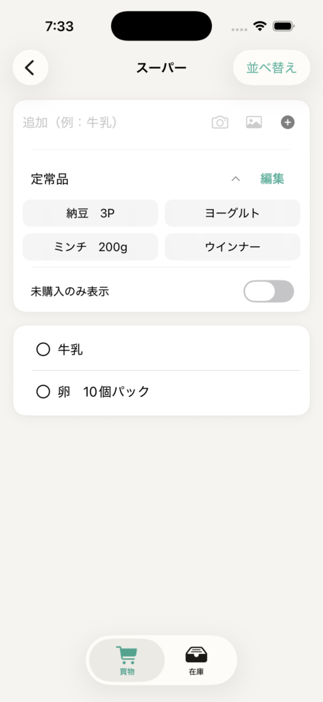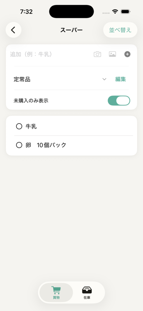 - 「未購入だけ表示」をONにして買い忘れ防止