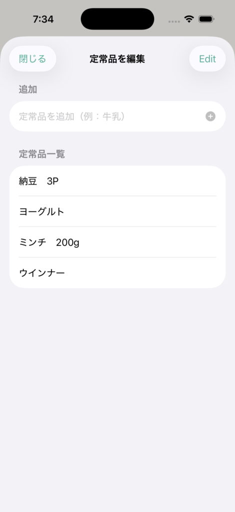 「定常品(よく買うもの)」を登録しておけば、毎回の入力が減ります。